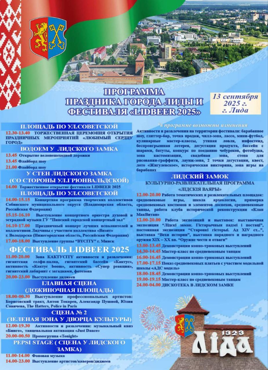 Программа праздника города Лиды и фестиваля "LIDBEER 2025"
