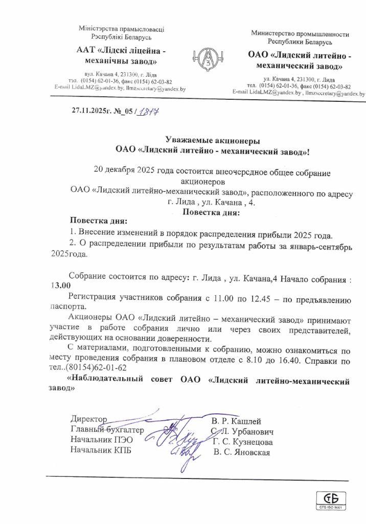 «Наблюдательный совет ОАО «Лидский литейно-механический завод»
